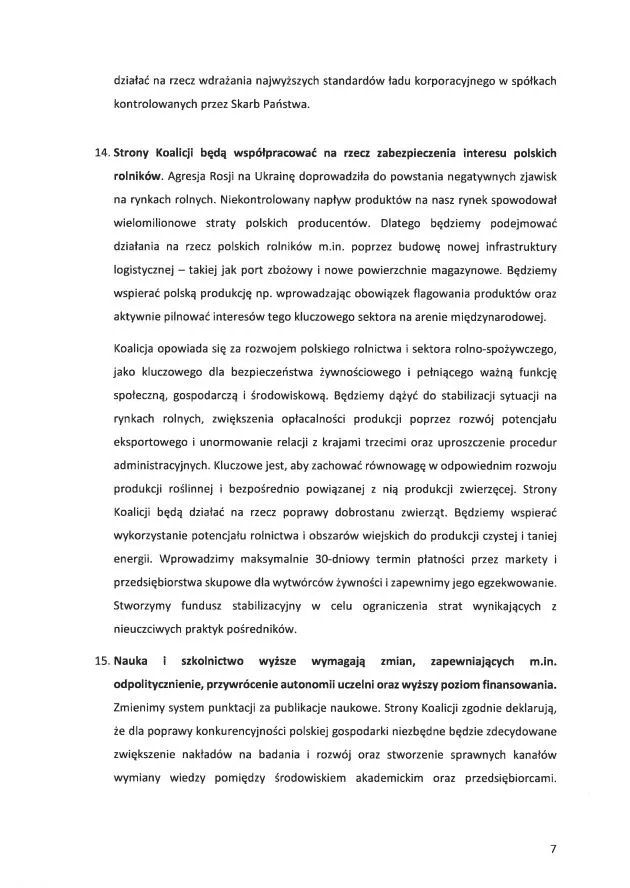 Kosiniak-Kamysz zwrócił uwagę, że to pierwszy krok, ale "bez tego porozumienia, gdzie dużo więcej nas łączy niż mogłoby podzielić, nie będzie kolejnych etapów". "A kolejne etapy to jest bezpieczeństwo Polski, bezpieczeństwo każdej polskiej rodziny. To jest dobrobyt, życie w najpiękniejszym kraju na świecie, w naszej ukochanej Rzeczypospolitej. To jest wszystko, co łączy niezależnie, skąd pochodzimy i jacy jesteśmy, jakie mamy światopoglądy. Wszystkiego nie da się zapisać do jednego mianownika, ale stworzyliśmy bardzo szeroki wspólny mianownik spraw, które chcemy załatwić, zrealizować. One dotyczą przedsiębiorców i pracowników. Dotyczą edukacji i ochrony zdrowia. Dotyczą wsi, rolnictwa i wielkich metropolii. Dotyczą praw kobiet, pomyślności rodziny" - wskazał.