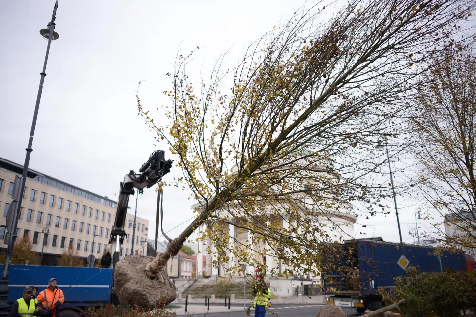 Na placu Trzech Krzyży sadzą drzewa za 14 tys. zł. Do Warszawy przyjechały z Niemiec [NASZE WIDEO]