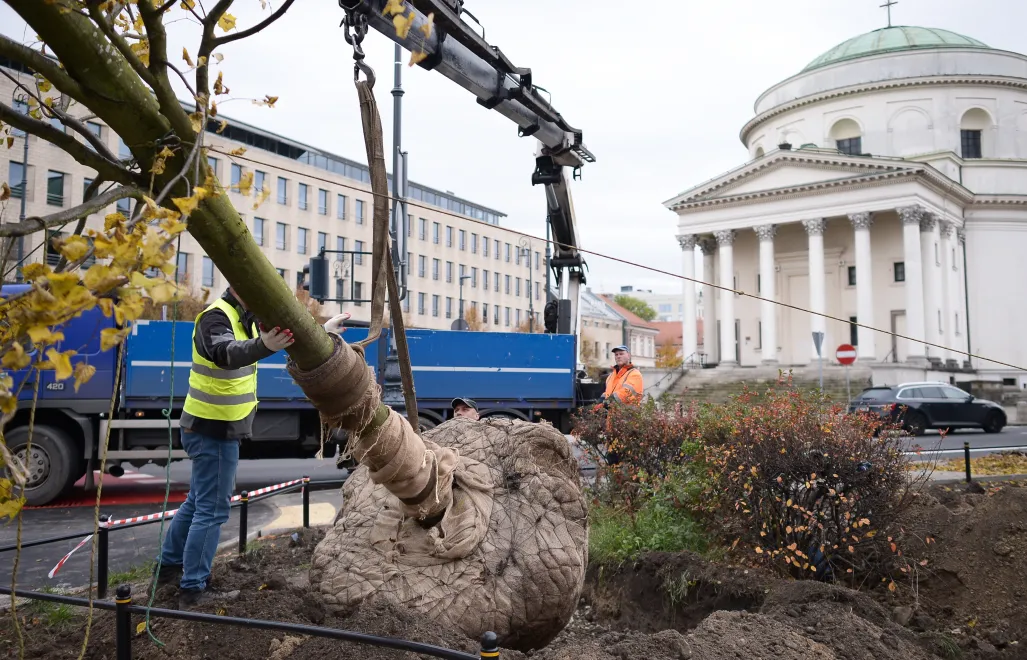 "Jesteśmy teraz w trakcie sadzenia. Dziennie przyjeżdżają trzy drzewa, bo tyle mieści się na naczepę tira. W sumie mamy na placu posadzić 24 duże drzewa, z czego 16 to będą lipy a reszta to głogi. Do końca tygodnia na placu Trzech Krzyży powinny pojawić się wszystkie drzewa" - przekazał.