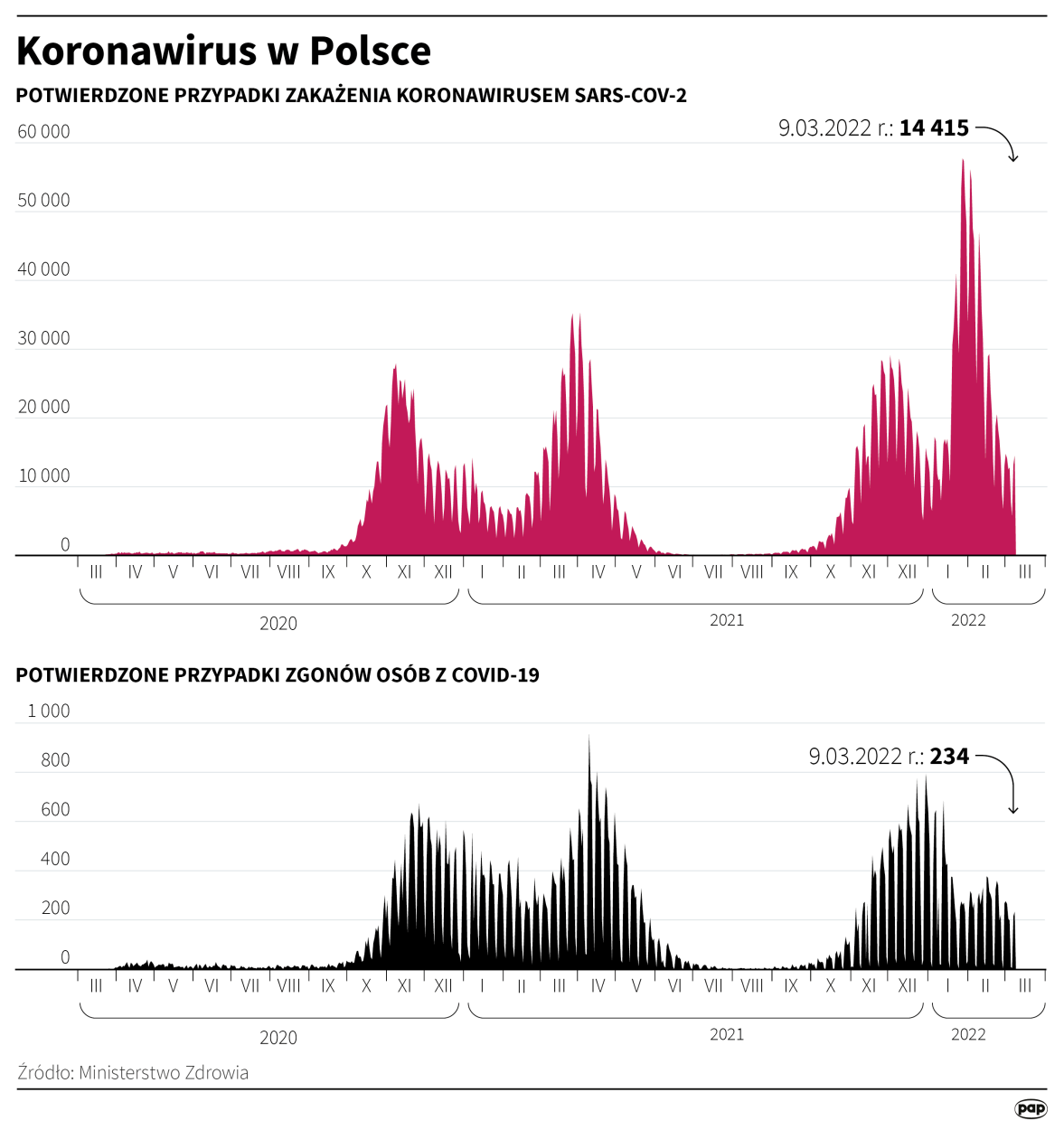 "Dzisiaj mamy dokładnie 14 415 nowych przypadków" – przekazał w środę wiceminister zdrowia Waldemar Kraska na antenie Programu I Polskiego Radia. Dodał, że jest to niewielki spadek.