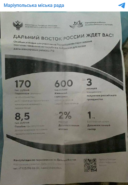 16:40 Nasi ludzie wywożeni są do najbardziej depresyjnych regionów Rosji - podała mariupolska rada miejska. Władze miasta opublikowały zdjęcie ulotki, które według nich otrzymują wywiezieni do Rosji mieszkańcy Mariupola. "Takie ulotki otrzymują deportowani mieszkańcy Mariupola. Naszych ludzi wywożą do najbardziej depresyjnych regionów Rosji" - napisała rada miejska na Telegramie i opublikowała zdjęcie ulotki. Na kartce napisano m.in. "Daleki Wschód Rosji czeka na was". "Szczególne warunki dla uczestników państwowego programu przesiedlenia rodaków z zagranicy, którzy wybrali do życia dalekowschodnie regiony Rosji" - dodano.