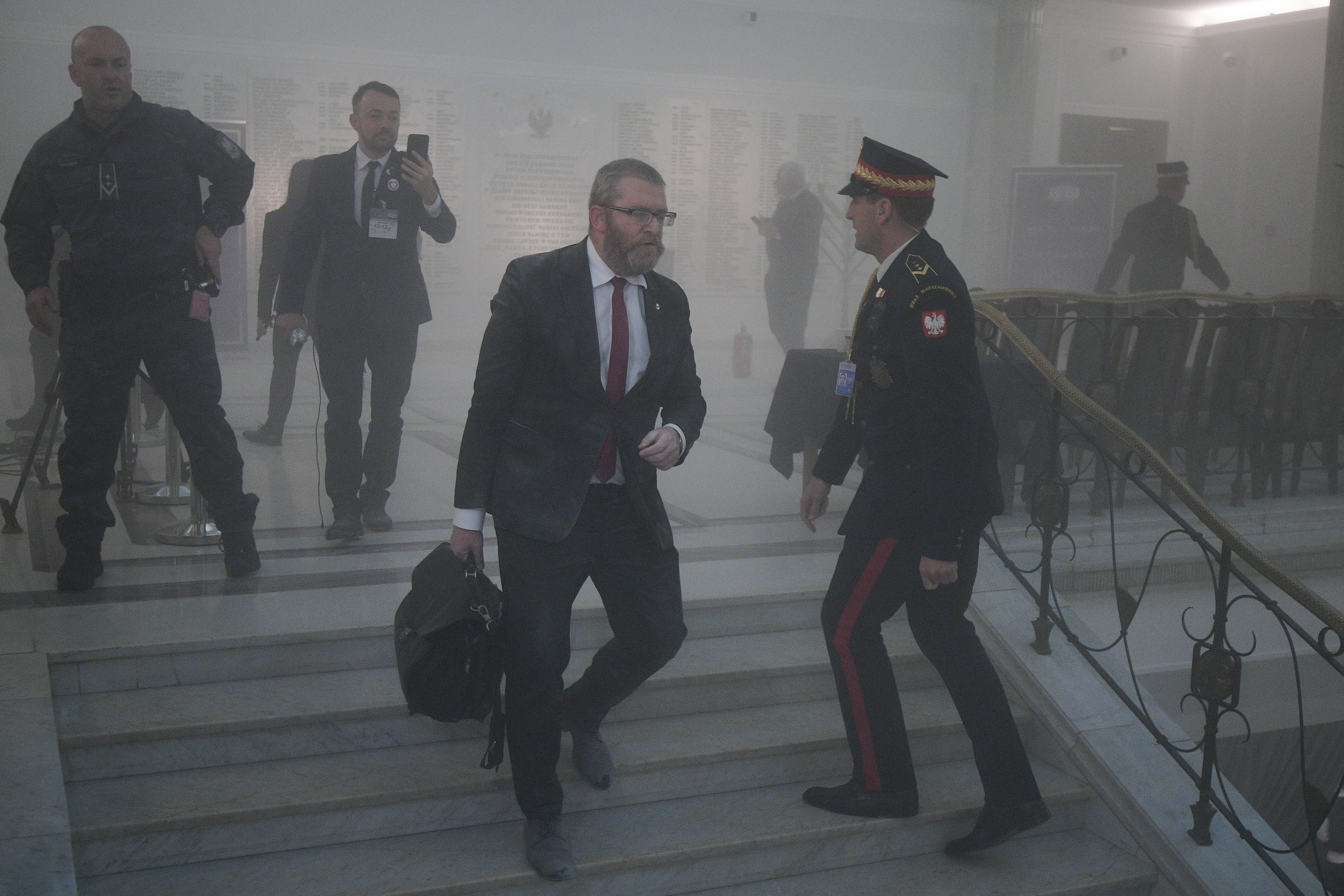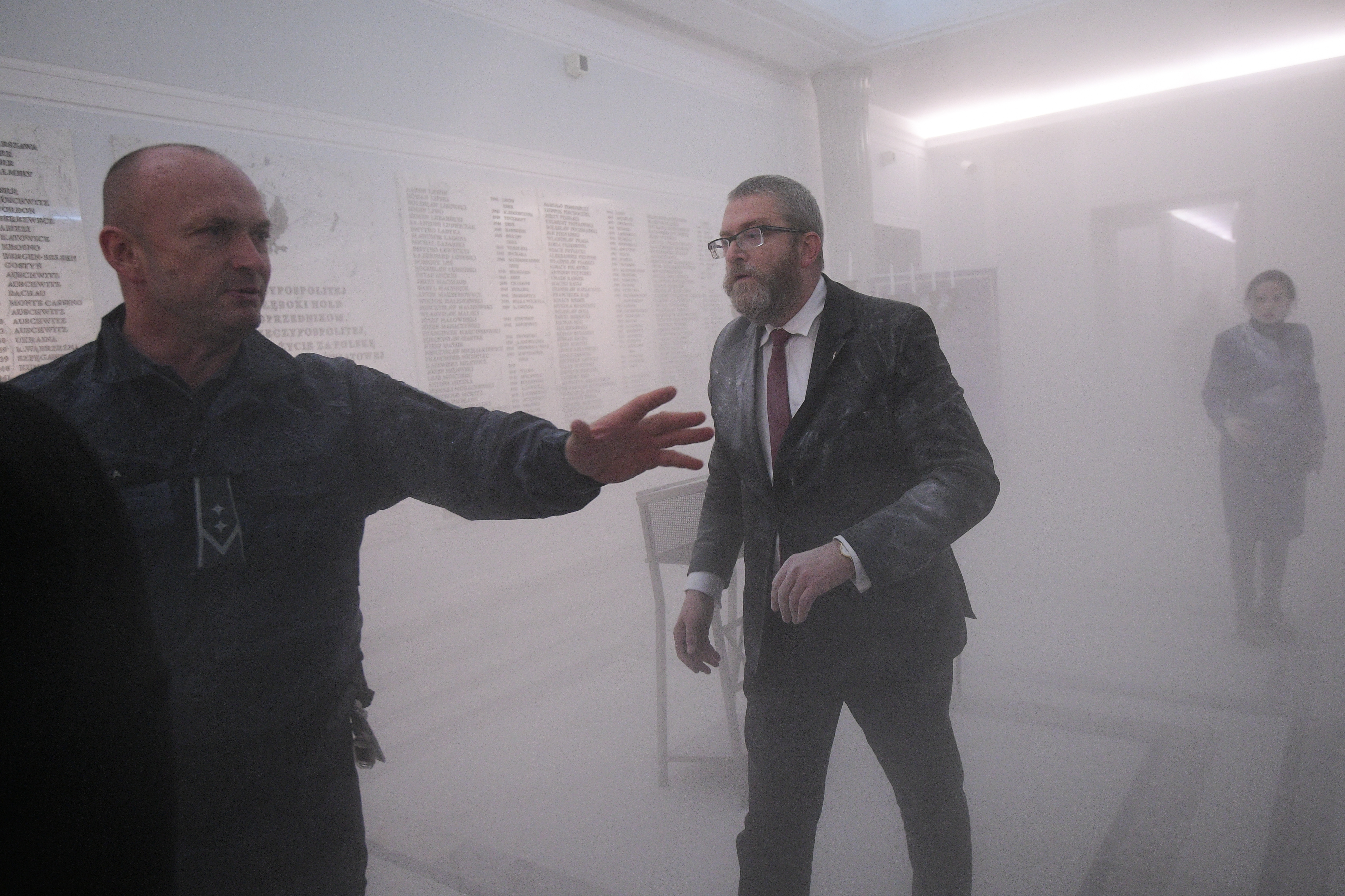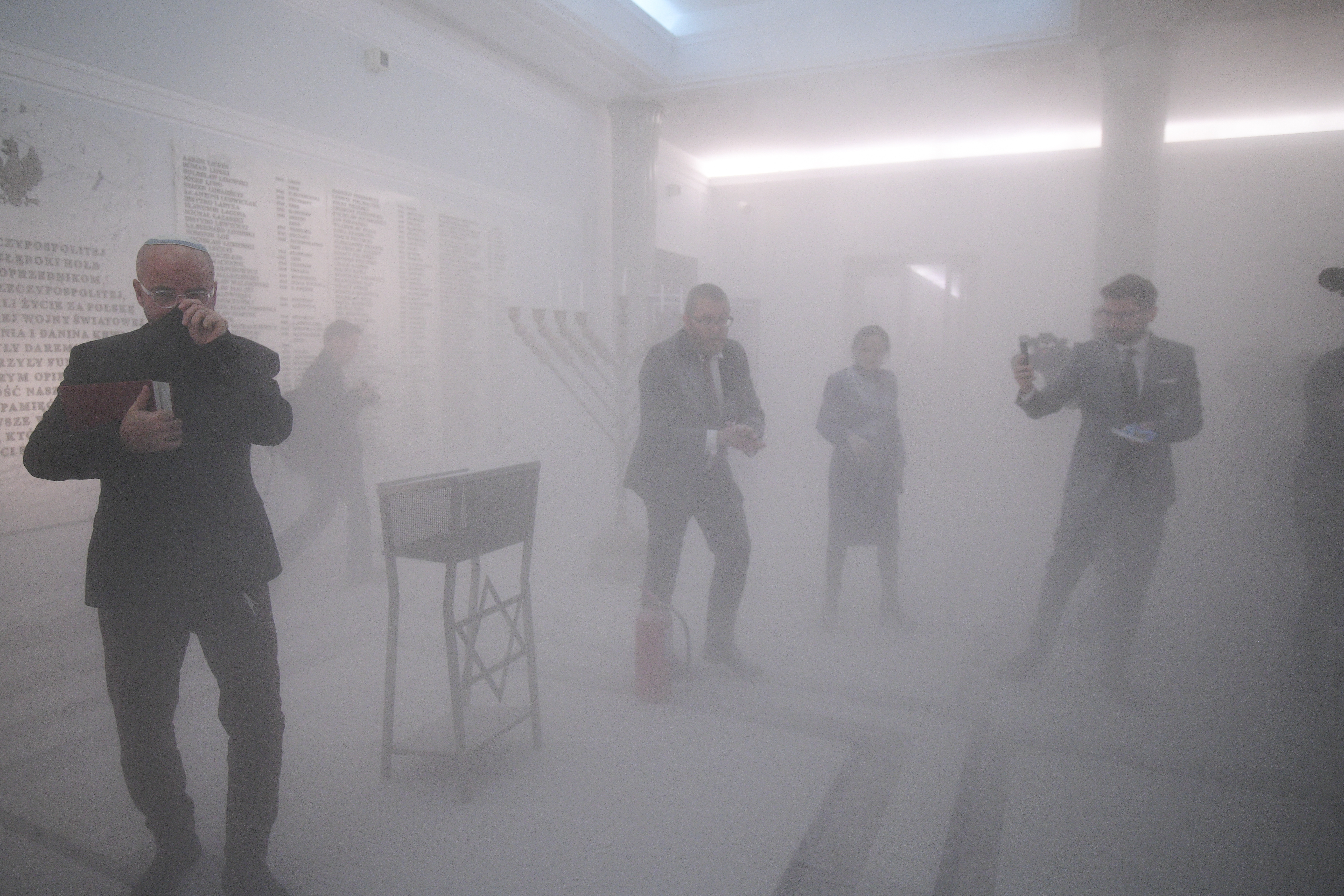 Poseł Konfederacji Grzegorz Braun, używając gaśnicy proszkowej, zgasił zapalone w Sejmie świece chanukowe. Potem pojawił się na mównicy sejmowej. Po tym wydarzeniu marszałek Sejmu wykluczył go z obrad.