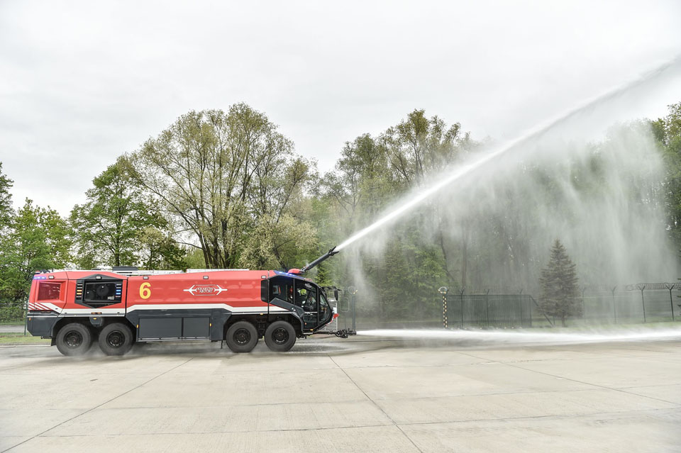 „To samochód przeznaczony do działań w trudnych sytuacjach na lotnisku. W tym przypadku najważniejszy jest czas dojazdu, w każdych warunkach terenowych czy atmosferycznych, jak i intensywność podawania środka gaśniczego. Dlatego ten samochód jest tak duży i zabiera tyle środka gaśniczego” - mówi Zbigniew Pudełko, dowódca zmiany lotniskowej służby ratowniczo-gaśniczej. Podobny model pojazdu znakomicie sprawdził się na lotniskach w Tokio, Madrycie i Paryżu.