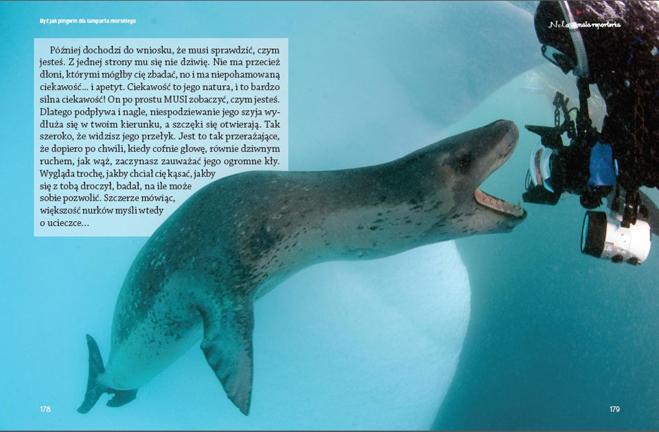 Co zobaczyła pod wodą? Dlaczego wolała uniknąć spotkania z lampartem morskim? Czemu jej strój przypominał strój kosmonauty?
