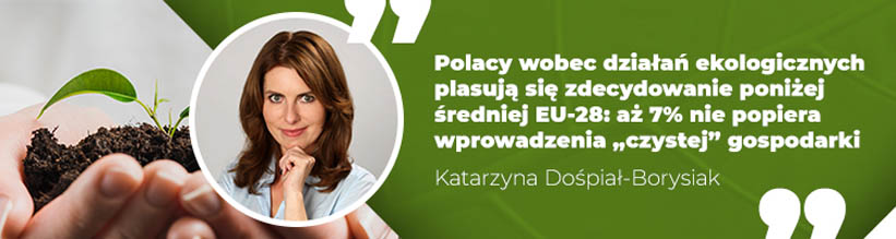 Może niepokoić, iż Polacy wobec działań ekologicznych plasują się zdecydowanie poniżej średniej EU-28 i aż 7% nie popiera wprowadzenia „czystej” gospodarki. Okazuje się również, iż jesteśmy bardziej sceptyczni wobec publicznego wsparcia finansowego dla przejścia do czystej energii, kosztem zmniejszenia dotacji do paliw kopalnych. Najwyraźniej Polacy w mniejszym stopniu potrafią również dostrzec korzyści gospodarcze, jakie UE i jej państwa członkowskie mogą uzyskać dzięki walce ze zmianami klimatu. Ponad ośmiu na dziesięciu europejskich respondentów (85%) zgadza się, że walka ze zmianami klimatu i wykorzystywanie energii skuteczniej może przyczynić się do wzrostu gospodarczego i tworzenia miejsc pracy, natomiast w Polsce współczynnik ten wynosi 79%. Podobny odsetek Europejczyków (83%) zgadza się, że promowanie wiedzy fachowej na temat czystych technologii w krajach spoza UE może przynieść korzyści gospodarcze (Polska 82%). Niższy odsetek - choć nadal około dwóch trzecich obywateli UE - zgadza się, że zmniejszenie importu paliw kopalnych spoza UE może przynieść korzyści gospodarcze UE (69%), a także zwiększyć bezpieczeństwo dostaw energii do UE (67%) – w Polsce odpowiednio 67% i 66%.