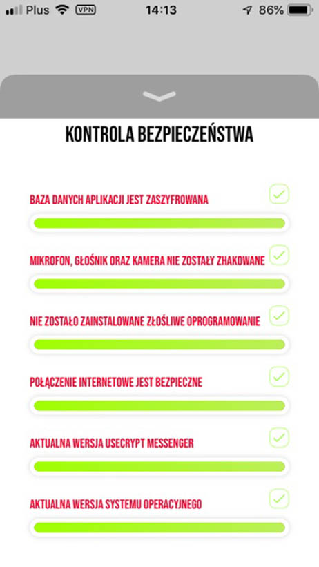 Jak podaje specjalistyczny portal AVLab.pl, większość dostępnych komunikatorów zapewnia wprost proporcjonalne bezpieczeństwo do bezpieczeństwa systemu operacyjnego. Oznacza to, że nieaktualizowany Android, ale także iPhone bez najnowszych aktualizacji jest bardziej podatny na bezpośrednią inwigilację niż urządzenie w pełni zaktualizowane i zabezpieczone wzorem blokady ekranu, kodem PIN, odciskiem palca albo Face ID - chociaż ta ostatnia technologia nie jest bezpieczna, jeśli chcemy trzymać poufne dane z dala od osób postronnych. Wyjątkiem od tej zasady jest komunikator UseCrypt Messenger, który wykrywa problemy z bezpieczeństwem na smartfonie.