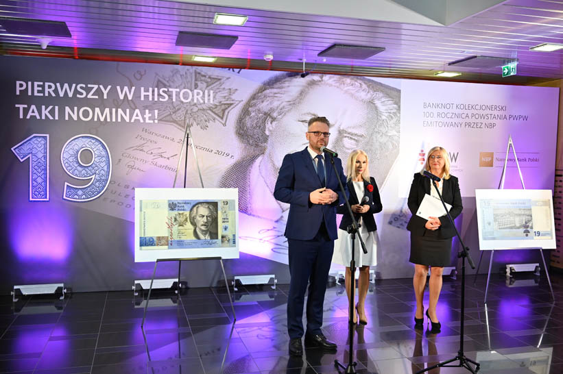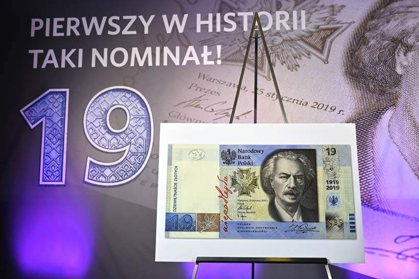 Po raz pierwszy w historii Narodowy Bank Polski wyemitował banknot o nietypowej wartości nominalnej 19 zł. Ma on charakter kolekcjonerski i upamiętania stulecie Polskiej Wytwórni Papierów Wartościowych. Na awersie nowego banknotu widnieje portret Ignacego Jana Paderewskiego, a na rewersie wizerunek budynku PWPW.