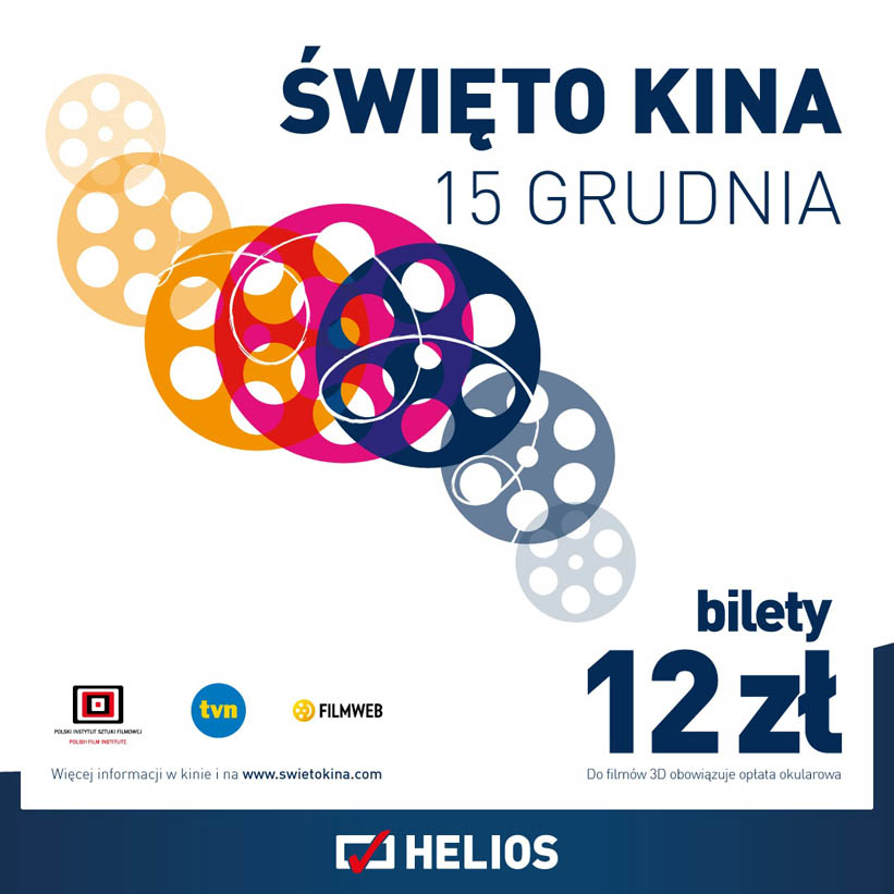 W tym roku Święta przychodzą szybciej... bo już 15 grudnia! Tego dnia bowiem swoje coroczne obchody zaplanowały kina w całej Polsce. Święto Kina to wspólna inicjatywa największych sieci kin: Cinema City, Helios, Multikino oraz Cinema 3D. Do akcji dołączyły także poszczególne kina studyjne w całej Polsce. Bilety na wszystkie seanse będzie można kupić za zaledwie 12 zł. To doskonała okazja, aby schronić się w kinowej sali przed świąteczną gorączką.