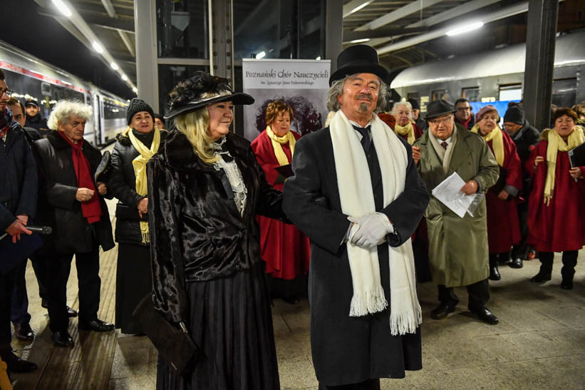 Po ponad 100 latach na poznański dworzec znów wjechał skład z lat międzywojennych, z którego wysiedli aktorzy odgrywający role Paderewskiego i jego małżonki. Poznański Chór Nauczycieli im. Ignacego Jana Paderewskiego i zgromadzona na peronie publiczność śpiewała: „Paderewski jedzie, pomoże nam w biedzie, Prusaków pogoni, znów będziemy wolni”.