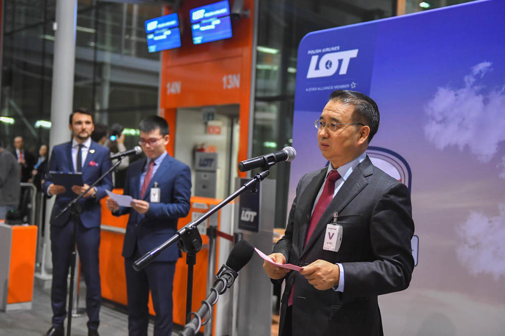 W uroczystym otwarciu nowego połączenia, które odbyło się wieczorem 15 stycznia 2020 roku na warszawskim Lotnisku Chopina, oprócz prezesa LOT-u udział wziął również wiceminister spraw zagranicznych Marcin Przydacz oraz ambasador Chin w Polsce, Liu Guangyuan.