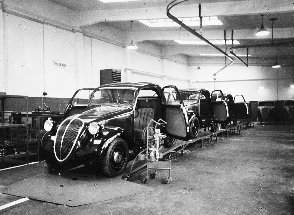 Fot. 2 – Polski Fiat 500 Topolino, linia montażowa zakładu Polski Fiat, ul. Sapieżyńska 6, rok 1938