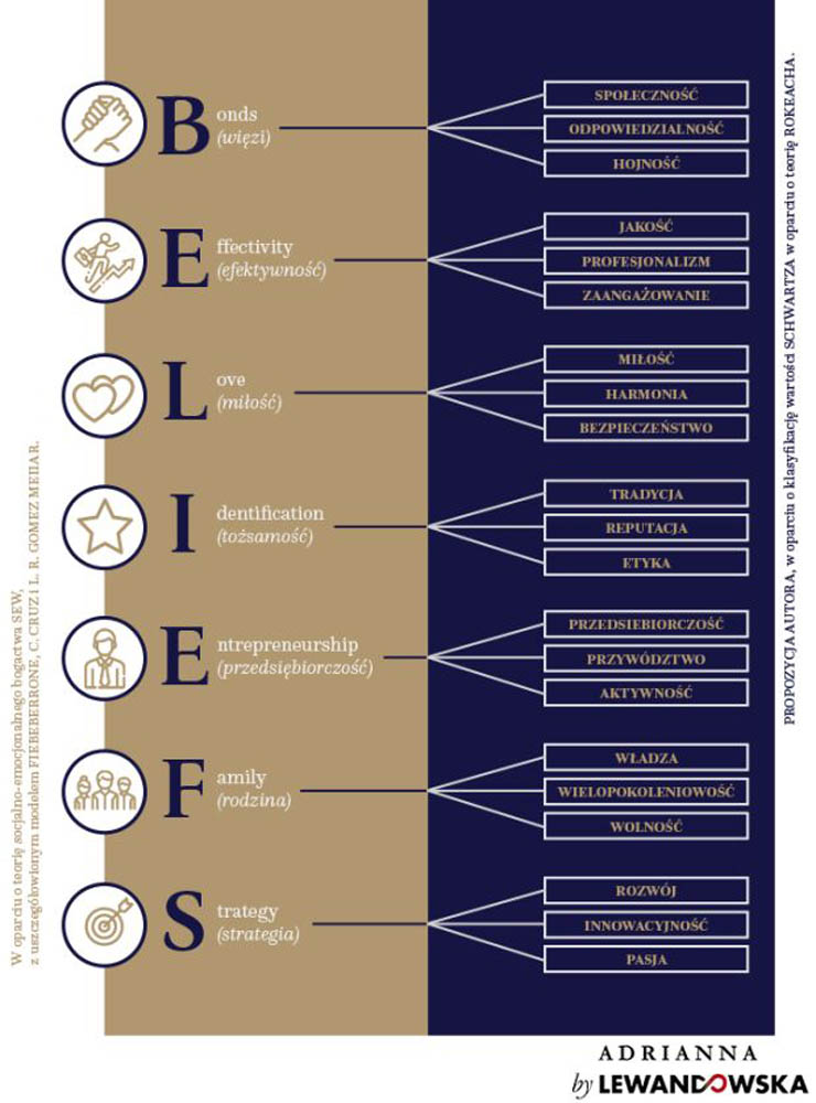 W swoim projekcie dr Lewandowska dokonała klasyfikacji wzorców istotnych dla rodzinnych przedsiębiorstw, tworząc tzw. wiązki wartości. Są to: