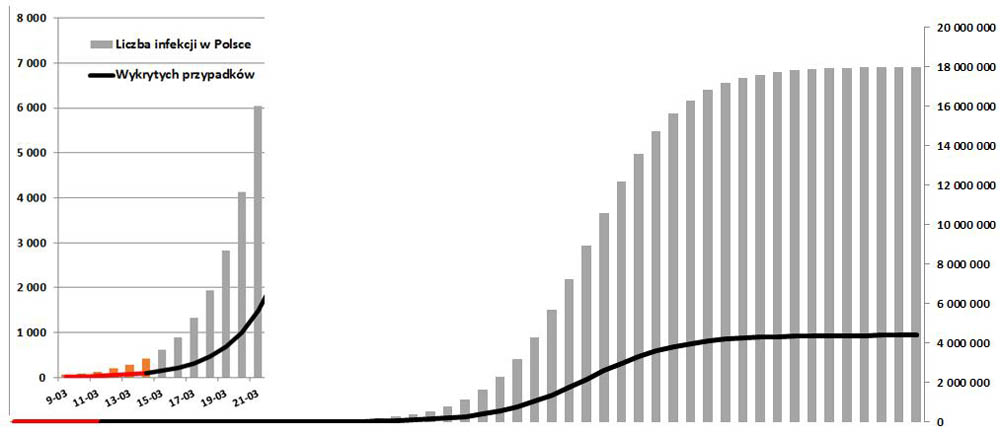 Przy braku odpowiednich działań Polska w ciągu najbliższych trzech tygodni zetknie się z podobną skalą problemów, jakie występują obecnie we Włoszech (główne kraje Europy Zachodniej są tylko 10 dni za Włochami, z kolei Stany Zjednoczone – tylko 14 dni). Liczba zakażonych obecnie podwaja się co trzy lub cztery dni, podczas gdy w Chinach podwajała się tylko co sześć dni. Oznacza to znacznie gorsze – w porównaniu do Chin – efekty walki z wirusem reszty świata.