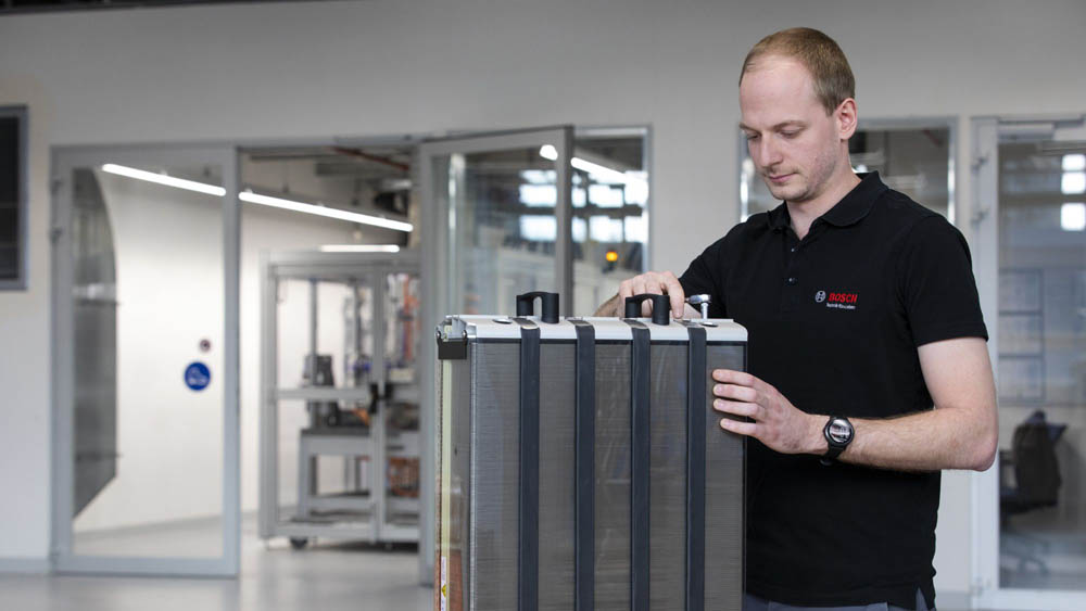 „W branży motoryzacyjnej, podobnie jak w branży technicznego wyposażenia budynków, wodór zyskuje na znaczeniu. Bosch jest na to bardzo dobrze przygotowany” – zadeklarował Denner. Koncern współpracuje już z firmą partnerską Powercell nad uruchomieniem masowej produkcji stosów do mobilnego ogniwa paliwowego, które będzie wykorzystywane w pojazdach. Wprowadzenie produktu na rynek jest planowane na 2022 rok. Bosch zamierza przy tym tworzyć kolejny rynek wzrostu: już w 2030 roku co ósmy nowo zarejestrowany ciężki pojazd użytkowy mógłby być zasilany przez ogniwo paliwowe. Nad stacjonarnymi ogniwami paliwowymi Bosch pracuje natomiast razem z firmą Ceres Power. Te ogniwa paliwowe mogą być wykorzystywane np. do zasilania prądem centrów obliczeniowych. Według szacunków Bosch, już w roku 2030 wartość rynku elektrowni opartych na ogniwach paliwowych mogłaby przekroczyć 20 mld euro.