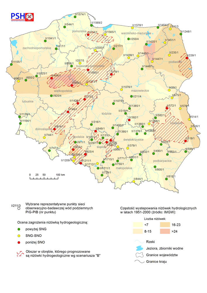 Jeśli w ciągu nadchodzących tygodni nie wystąpią znaczne opady, na części obszaru Polski prognozuje się utrzymanie niżówki hydrogeologicznej. Najbardziej zagrożone będą województwa wielkopolskie, kujawsko-pomorskie, lubelskie oraz pomorskie, podlaskie, dolnośląskie, opolskie i śląskie. Jednak lokalnie problemy mogą pojawić się także w województwach mazowieckim i warmińsko-mazurskim. Oznacza to, że zwłaszcza na wymienionych obszarach może dojść do utrudnień w zaopatrzeniu w wodę z płytkich ujęć wód podziemnych (indywidualne studnie gospodarskie) oraz z ujęć komunalnych eksploatujących pierwszy poziom wodonośny, najszybciej reagujący na deficyt opadów.