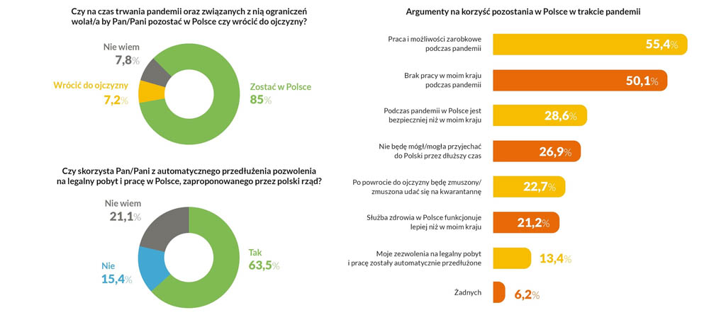 Warto podkreślić, że z automatycznego przedłużenia ważności dokumentów zezwalających na pobyt i pracę w Polsce w czasie trwania pandemii, zaproponowanych przez polski rząd, ma zamiar skorzystać niemal 2/3 zatrudnionych u nas cudzoziemców (63,5%).
