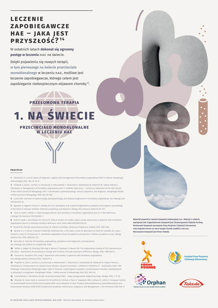 Takim działaniem jest także zainicjowana przez organizacje pacjentów kampania edukacyjna HAE. Walczyć o oddech, wytrzymać ból, która ma zwrócić uwagę na problemy polskich pacjentów ze zdiagnozowanym HAE, ale także zwiększyć świadomość społeczną na temat choroby.
