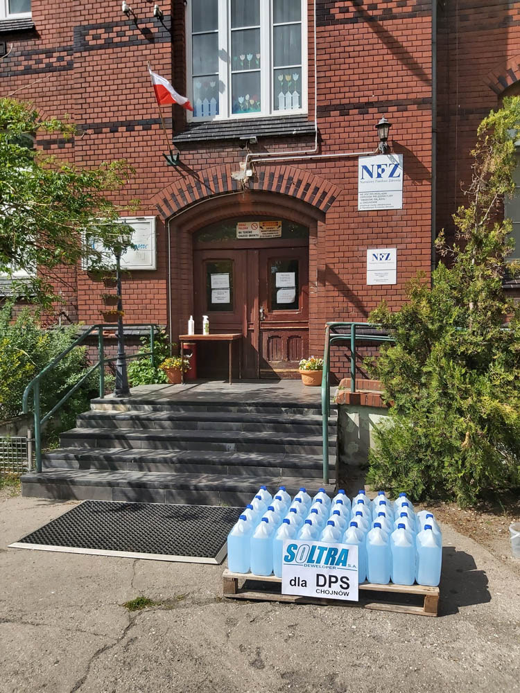 Ponadto Soltra S.A. przekazała dla Domu Pomocy Społecznej w Legnicy, 175 litrów płynów do dezynfekcji i 2000 sztuk rękawic ochronnych, a także 175 litrów płynów do dezynfekcji dla Ośrodka Pielęgnacyjno-Rehabilitacyjnego „Niebieski Parasol” w Chojnowie.