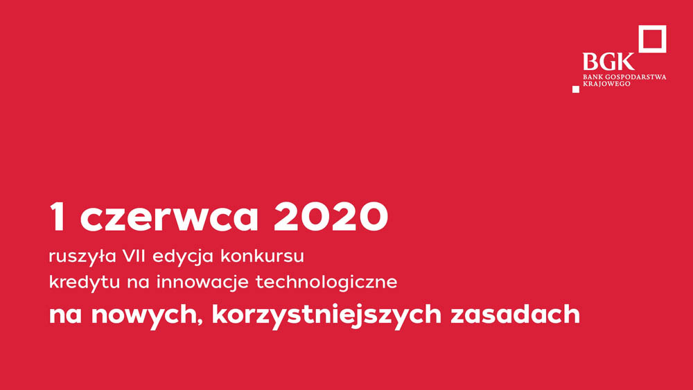 Bank Gospodarstwa Krajowego od 1 czerwca przyjmuje wnioski o kredyt na innowacje technologiczne na znacznie korzystniejszych zasadach. Tarcza antykryzysowa wprowadziła ułatwienia w zasadach ubiegania się o premię technologiczną. Są to: zniesienie wymogu innowacyjności w skali kraju, poszerzony katalog kosztów kwalifikowalnych oraz zniesienie limitu dofinansowania wynoszącego 6 mln zł. Dzięki temu więcej firm będzie mogło się ubiegać o dotację.