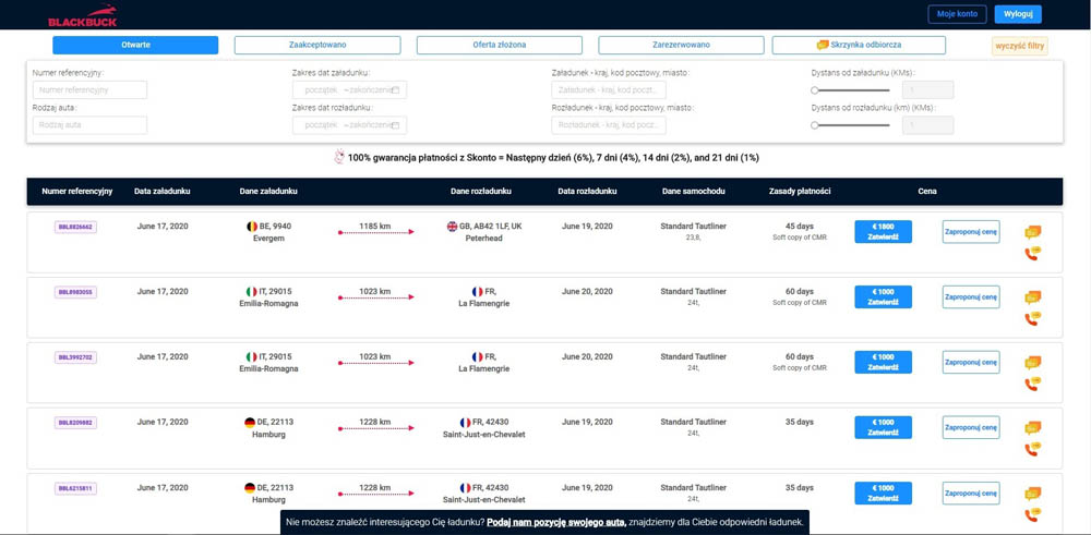 Od czasu uruchomienia, na platformie LoadBoard pojawiło się już ponad 2000 przewoźników i firm spedycyjnych, którzy zarejestrowali się i korzystają z platformy za darmo. Marcin Szalak, dyrektor operacyjny w BlackBuck, powiedział: „Z pokorą przyjęliśmy odpowiedź, którą otrzymaliśmy z rynku. Bierzemy pełną odpowiedzialność za nasze ładunki. Nasz zespół operacyjny jest dostępny 24h/7, aby zająć się wszelkimi problemami. Gwarantujemy płatności przewoźnikom dokładnie w dniach wymienionych w zleceniu transportowym, a pełna płatność automatycznie trafia na rachunek bankowy przewoźnika, bez konieczności przypominania lub telefonowania. Nasz LoadBoard jest bezpłatny dla naszych zweryfikowanych przewoźników i firm spedycyjnych. Marże osiągamy, sprzedając nasze ładunki. Nie chcemy zarabiać pieniędzy, gdy ich nie sprzedajemy. Oferujemy uczciwe ceny i krótkie terminy płatności, a także atrakcyjne płatności na zasadzie Skonta w ciągu 1 dnia od otrzymania dokumentów. ”
