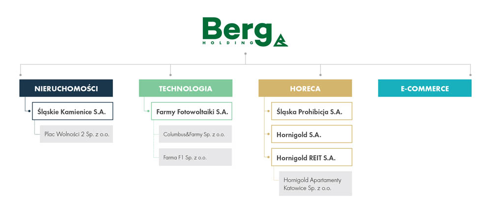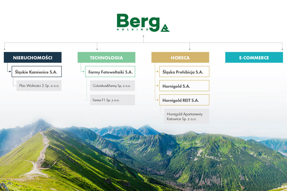 „Spółka Śląskie Kamienice już od 4 lat wychodzi poza obszar inwestycji w kamienice na Górnym Śląsku, tworząc od podstaw nowe koncepty, takie jak: Restauracja Śląska Prohibicja (ok. 730 mkw) i aparthotel Hornigold (ok. 4000 mkw). Prowadząc działalność za pośrednictwem tych i innych podmiotów zależnych, spółka płynnie przeistoczyła się w holding. Celem kontynuowania rozwoju w różnych obszarach i zwiększenia przejrzystości samej struktury, podjęto decyzje, aby zmienić się w Berg Holding S.A. i pod tą nazwą dalej rozwijać skrzydła. Nie oznacza to jednak, że Śląskie Kamienice znikną całkowicie z rynku. Będą one jednym z podmiotów zależnych od Berg Holding, zajmujące się stricte branżą nieruchomości. Poza dotychczasowymi obszarami, zdecydowaliśmy się rozszerzyć działalność na dwóch, nowych dla nas rynkach: fotowoltaice i e-commerce. Planujemy agresywnie wejść w zyskowną i szybko rozwijająca się branżę fotowoltaiczną, a konkretniej w gałąź farm fotowoltaicznych, budowanych od małych jednomegawatowych farm po wielkie trzydziesto/czterdziesto-megawatowe” – mówią prezesi zarządu, dr Ofka Piechniczek i Kamil Kita.
