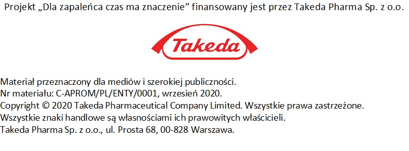 Projekt edukacyjny „Dla zapaleńca czas ma znaczenie” prowadzony jest we współpracy z organizacjami wspierającymi pacjentów chorujących na nieswoiste zapalenia jelit. W ramach projektu powstały trzy filmy z udziałem pacjentów i ekspertów. Pierwszy film przedstawia historię Marty, chorującą na chorobę Leśniowskiego-Crohna oraz Tomasza, cierpiącego na wrzodziejące zapalenie jelita grubego, którzy opowiadają o swoich doświadczeniach związanych z początkiem choroby, jej przebiegiem oraz leczeniem. Drugi film to proza codziennego życia z chorobą pokazana oczami samych bohaterów, sytuacje tylko z pozoru proste, bo jednak będące dla nich wyzwaniem z racji choroby. W trzecim filmie, prof. Jarosław Reguła - krajowy konsultant w dziedzinie gastroenterologii oraz dr Małgorzata Gałązka- Sobotka - ekspert ochrony zdrowia, dyrektor Instytutu Zarządzania w Ochronie Zdrowia oraz Center of Value Based Healthcare Uczelnia Łazarskiego, komentują aktualną sytuację chorych z nieswoistymi chorobami zapalnymi jelit w Polsce. Dodatkowo w ramach projektu, pacjenci z chorobą Leśniowskiego-Crohna: Marta i Janusz, opisali swoje historie życia i opatrzyli je zdjęciami z prywatnego archiwum.