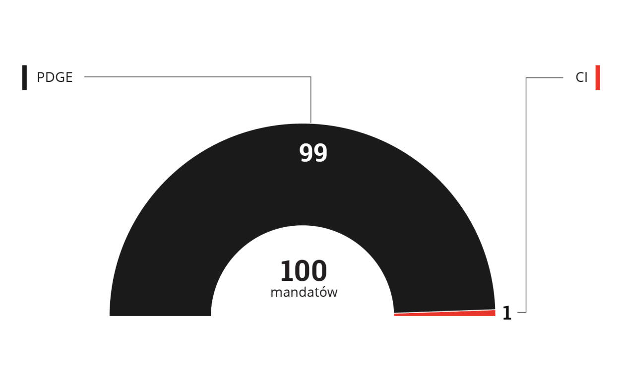Podział mandatów po wyborach z 12 listopada 2017 r.: PDGE 99, CI 1. Razem 100.