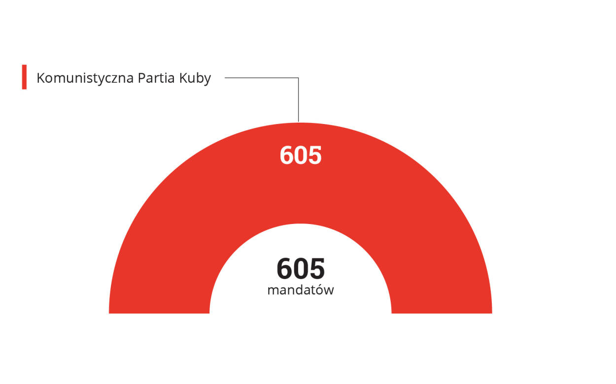 W wyborach, które odbyły się 11 marca 2018 r., wszystkie 605 mandatów zdobyli kandydaci Komunistycznej Partii Kuby.