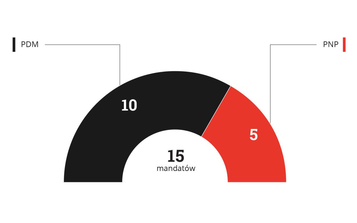 Podział mandatów po wyborach z 15 grudnia 2016 r.: PDM 10, PNP 5. Razem 15.