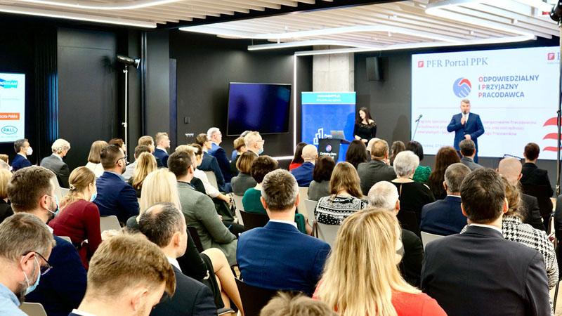 W uroczystej gali rozdania nagród, która odbyła się 17 listopada br. w Centralnym Domu Technologii, uczestniczyli przedstawiciele nagrodzonych firm, instytucji finansowych oraz mediów. Spotkanie otworzył Robert Zapotoczny, prezes PFR Portal PPK, spółki odpowiedzialnej między innymi za oficjalną stronę programu MojePPK.pl oraz Tomasz Fill, wiceprezes Polskiego Funduszu Rozwoju.