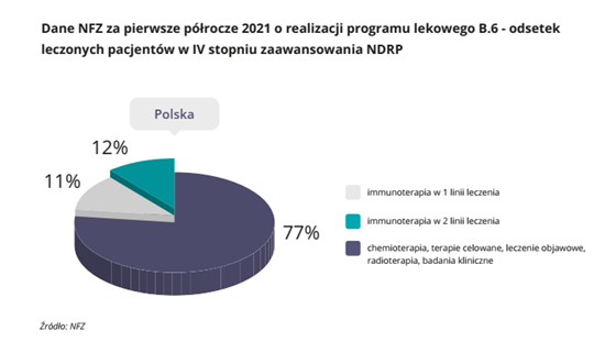 „Nie możemy pozostać obojętni wobec faktu, iż pomimo dostępnej refundacji immunoterapii czy immunochemioterapii, tylko 11% pacjentów otrzymało ten schemat leczenia spośród grupy wszystkich chorych kwalifikujących się do leczenia [3]. Pomimo dostępu do innowacyjnych terapii, nie są one wykorzystywane przez lekarzy w optymalny sposób w leczeniu chorych na raka płuca w Polsce. Nadal nie spadł też odsetek pacjentów leczonych standardową chemioterapią” – wskazują autorzy raportu.