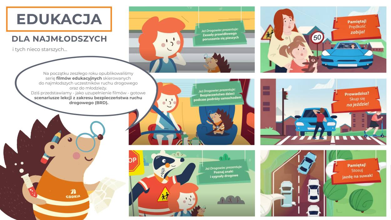 Na początku zeszłego roku GDDKiA opublikowała serię filmów edukacyjnych skierowanych do najmłodszych uczestników ruchu drogowego oraz do młodzieży. Dziś przedstawia - jako uzupełnienie filmów - gotowe scenariusze lekcji z zakresu bezpieczeństwa ruchu drogowego (BRD). Mogą z nich skorzystać nauczyciele lub inne osoby prowadzące zajęcia w tych grupach wiekowych.