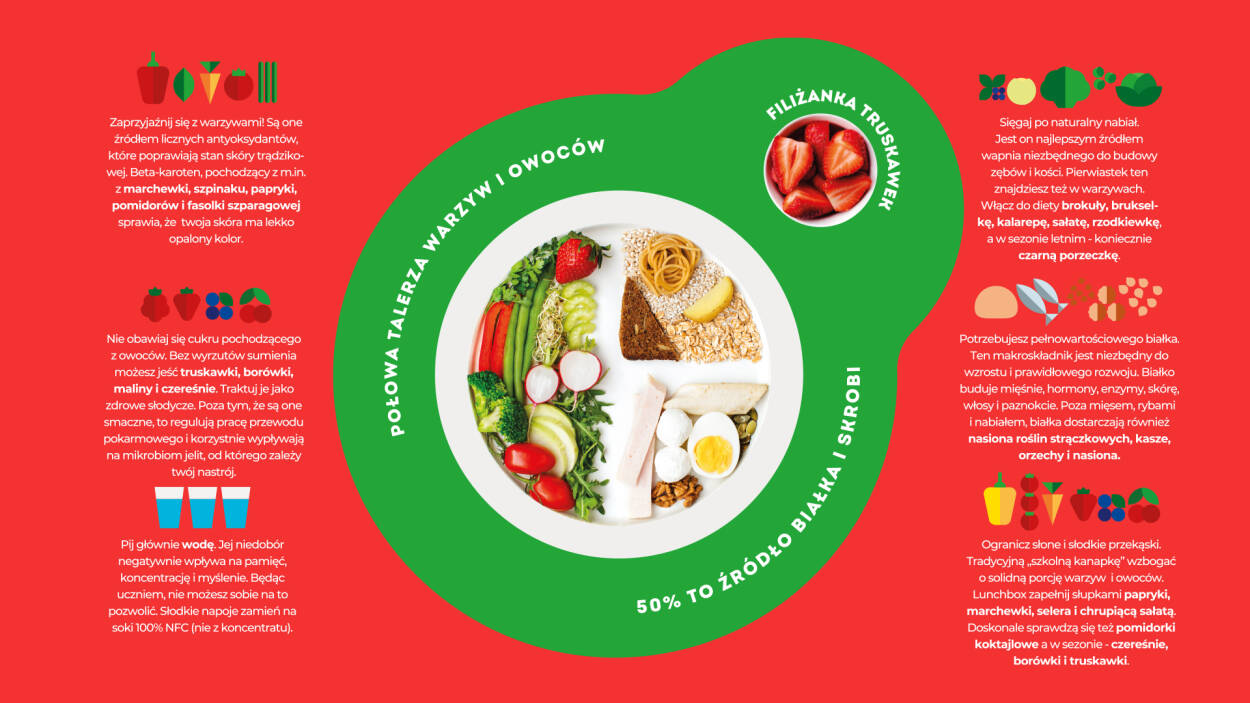 Pięć złotych porad żywieniowych dla nastolatków od dietetyka oraz więcej infografik promujących zalecenia dla nastolatków można ściągnąć tutaj.