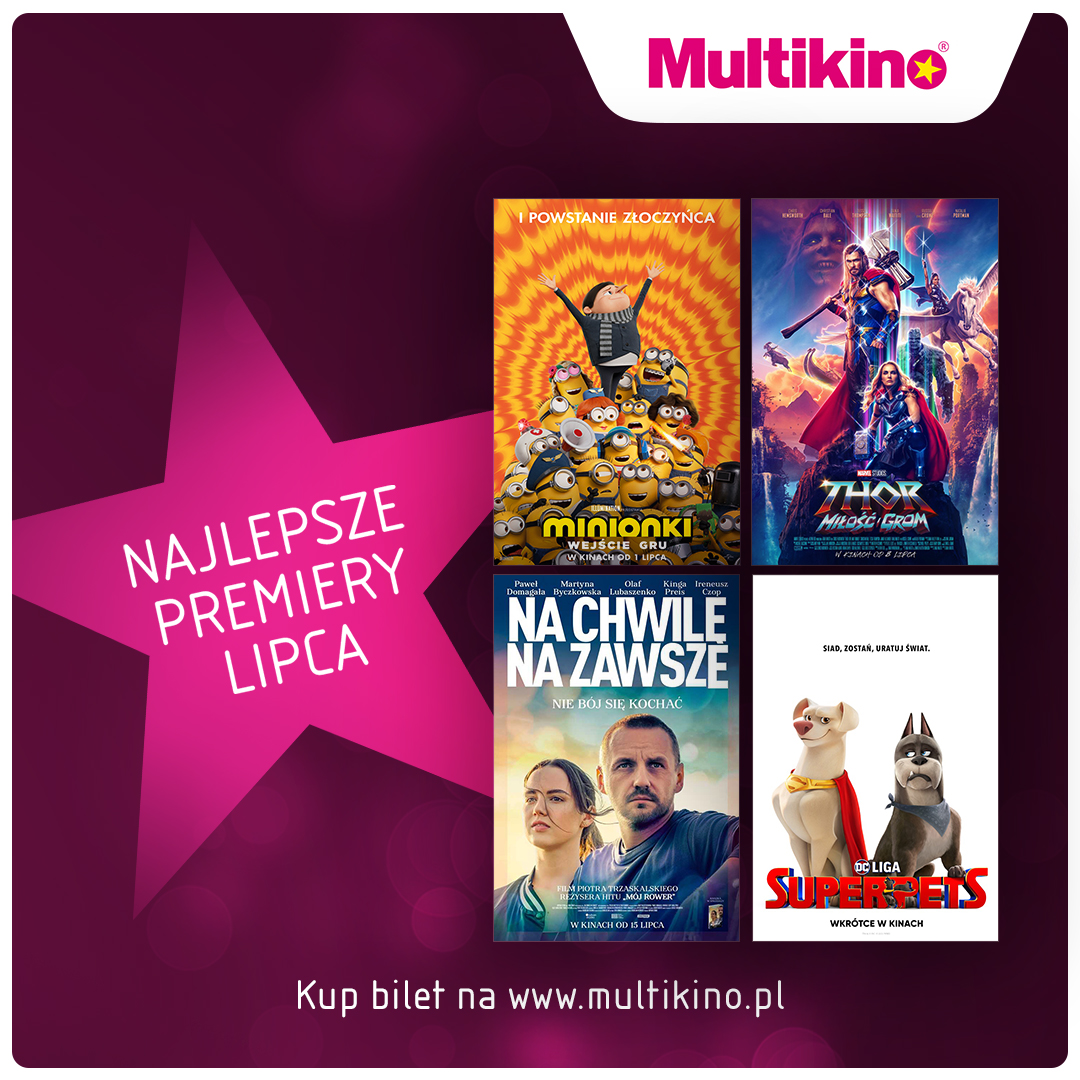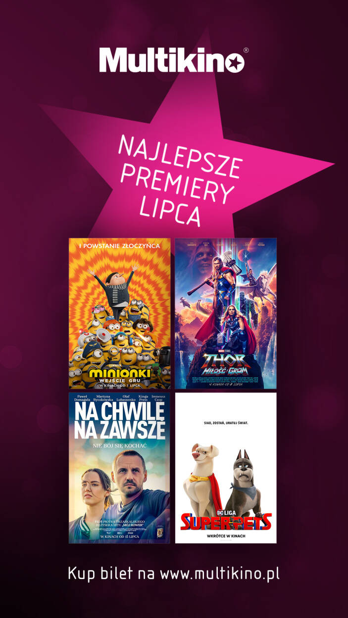 Początek wakacji przyniesie widzom wiele filmowych emocji. W lipcu na wielkim ekranie pojawią się między innymi: animacja „Minionki: wejście Gru”, najnowszy film Marvela „Thor: miłość i grom” oraz polski romans „Na chwilę, na zawsze”.