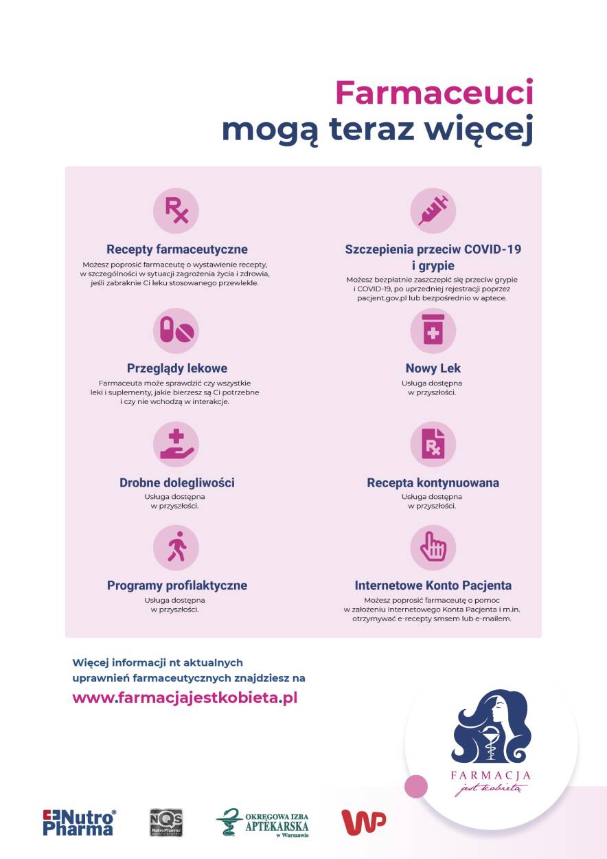 „Mimo że minął już rok od publikacji ustawy - niewielu Polaków ma świadomość, że farmaceuta może doradzić, zaszczepić, przedłużyć receptę, a nawet udzielić drobnej pomocy medycznej. Warto uświadomić to rodakom i jednocześnie podkreślić znacznie większą obecnie rolę farmaceutów w polskim systemie ochrony zdrowia” - mówi Katarzyna Bosacka.