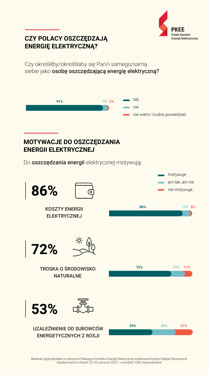 Kryzys na rynku energii elektrycznej wywołany m.in. kosztami zakupu uprawnień do emisji dwutlenku węgla, wysokością cen surowców, ale również agresją Rosji na Ukrainę, jest coraz bardziej odczuwalny przez gospodarstwa domowe w całej Europie. Czynniki te powodują, że w społeczeństwie zwiększa się świadomość racjonalnego korzystania z prądu oraz potrzeba redukcji jego zużycia. Potwierdzają to wyniki badań IBRiS zrealizowanych na zlecenie PKEE.