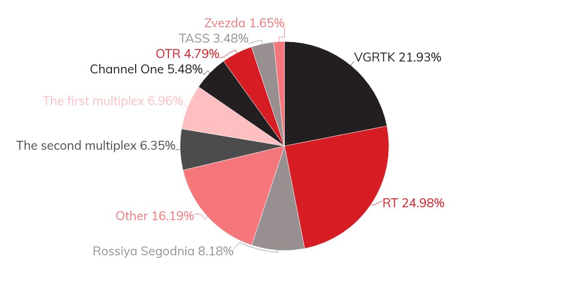 Największy udział w funduszach ma RT (dawniej Russia Today). „Od powstania w 2005 roku stacja służy do szerzenia dezinformacji i podważania zachodnich wartości” - zauważa Jakub Kubś, analityk DebunkEU.org. RT ma sześć wersji językowych (angielską, hiszpańską, francuską, niemiecką, arabską i rosyjską). W marcu 2022 r. audycje RT zostały zawieszone w UE, Wielkiej Brytanii i USA. Agencja ma jednak zasięg globalny.
