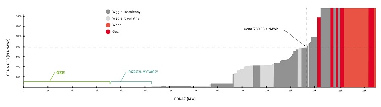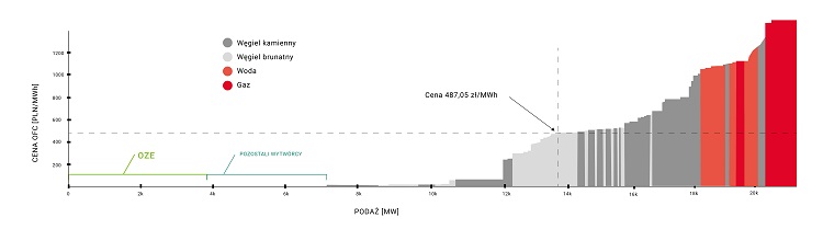 Najtańszymi jednostkami wytwarzającymi energię elektryczną na polskim rynku są odnawialne źródła energii. Koszt inwestycji w ich przypadku jest relatywnie wysoki, jednak sam koszt zmienny produkcji energii pozostaje najniższy. Droższe w zestawieniu są jednostki zasilane węglem brunatnym i kamiennym, elektrownie szczytowo-pompowe, które pełnią również funkcję magazynów energii, oraz jednostki gazowe, których średni koszt wytworzenia jest obecnie najwyższy. Na wysokie koszty produkcji energii z węgla kamiennego i gazu wpływają zarówno rekordowo wysokie ceny tych surowców, jak i koszty zakupu praw do emisji dwutlenku węgla w systemie EU ETS.
