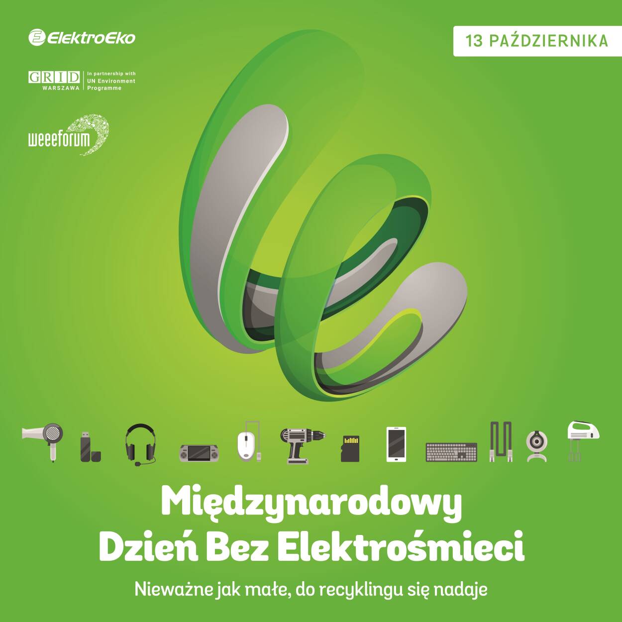 13 października obchodzić będziemy „Międzynarodowy Dzień Bez Elektrośmieci”. To inicjatywa stworzona przez WEEE Forum, a realizowana przy wsparciu ponad 120 organizacji z 70 krajów świata. W Polsce głównym organizatorem jest organizacja ElektroEko S.A., która wspólnie z UNEP-GRID Warszawa realizuje program działań edukacyjnych skierowanych do konsumentów, mediów, instytucji oraz przedsiębiorców. Parterami wydarzenia są Związek Cyfrowa Polska oraz APPLiA. Patronat honorowy udzieliły Ministerstwo Klimatu i Środowiska oraz Ministerstwo Rozwoju i Technologii.