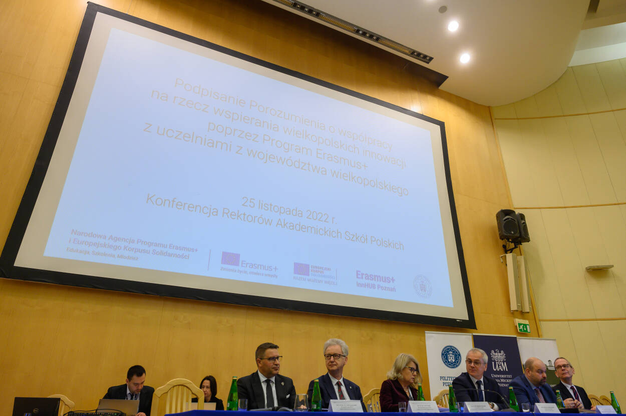 W piątek 25 listopada 2022 r. w Poznaniu rektorzy i prorektor siedmiu poznańskich uczelni podpisali Porozumienie o współpracy na rzecz wspierania wielkopolskich innowacji poprzez program Erasmus+. Jego celem jest promowanie i upowszechnianie międzynarodowych, innowacyjnych projektów edukacyjnych, z wykorzystaniem środków finansowych z programu Erasmus+. Tylko w tym roku na ten cel zostanie przekazanych miliard złotych.