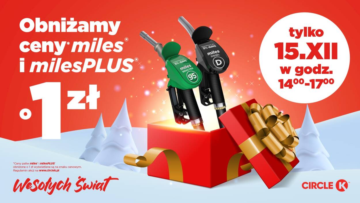 Z okazji zbliżających się Świąt Circle K zaoferuje swoim klientom wyjątkowe zniżki na paliwo. Już 15 grudnia w godzinach od 14:00 do 17:00 ceny wszystkich paliw miles® oraz milesPLUS® zostaną obniżone o złotówkę, co pozwoli kierowcom zaoszczędzić średnio 50 zł podczas jednego tankowania. Promocja odbywa się w ramach ogólnoeuropejskiej przedświątecznej akcji sieci Circle K.