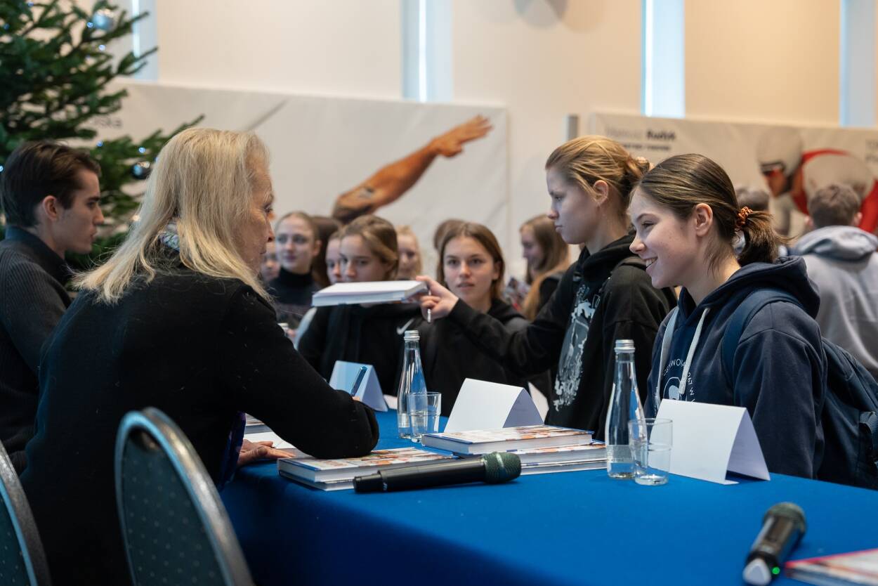 „Wspomnienia i życiorysy przedwojennych sportowców są dla mnie pasjonujące. Poznałam w 1964 r. Stanisławę Walasiewiczównę, genialną biegaczkę. To było ogromne przeżycie” - wspominała, nawiązując do sztafety pokoleń, Teresa Sukniewicz-Kleiber - olimpijka z Meksyku (1968), brązowa medalistka mistrzostw Europy.