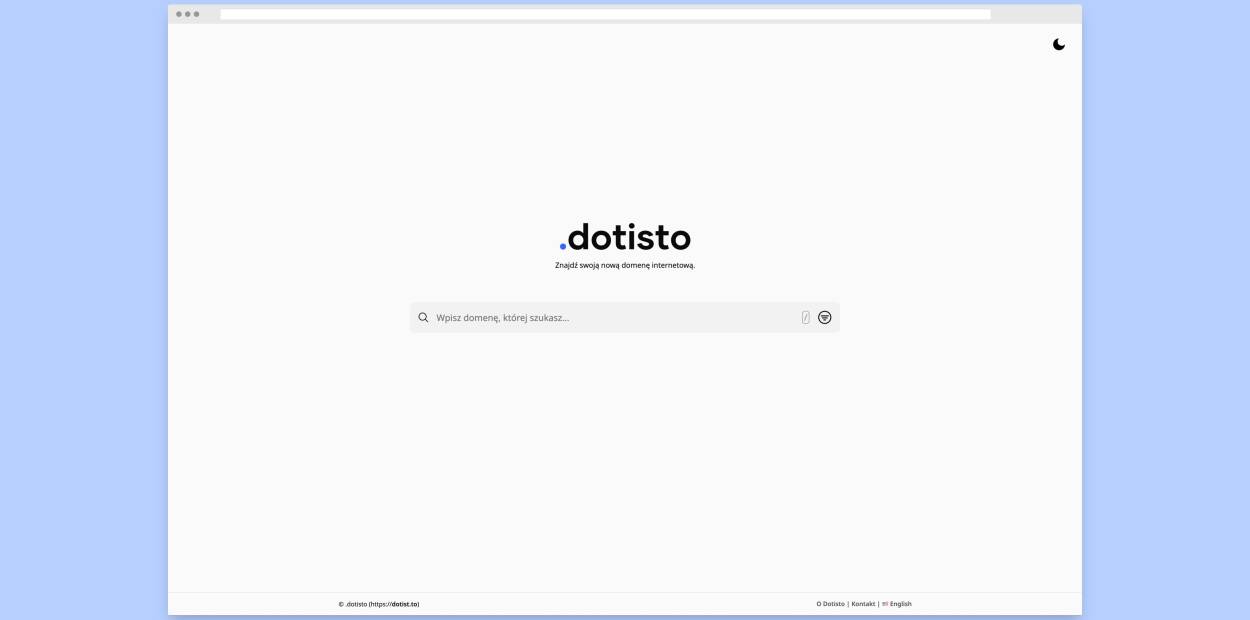 Wyszukiwarka domen .dostisto znajduje się pod adresem https://dotisto.pl lub krótszym https://dotis.to