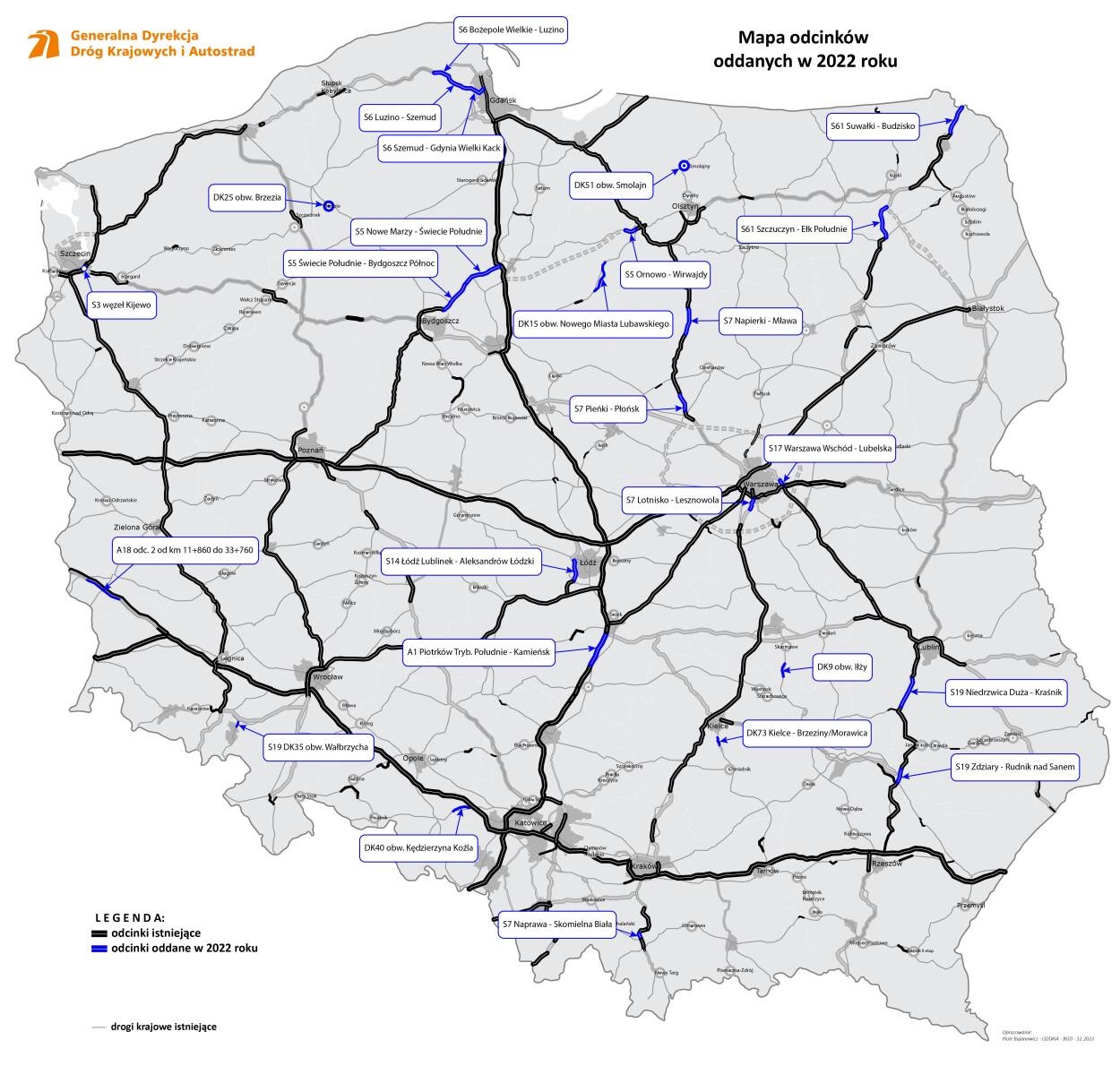 Wyżej wymieniliśmy już nowe odcinki dróg udostępnione dla kierowców. Było to 26 odcinków i prawie 322 km.