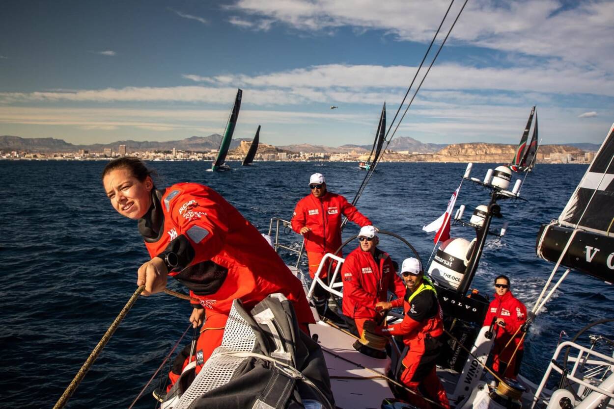 Obchodzące w tym roku jubileusz 50-lecia regaty The Ocean Race powróciły w wielkim stylu. Goszczący najlepszych żeglarzy z całego świata Ocean Live Park w Alicante przeżywał w weekend (14-15 stycznia 2023 r.) prawdziwe oblężenie. Przez teren regatowego miasteczka przewinęło się ponad 140 tysięcy osób. Największym zainteresowaniem cieszył się oczywiście niedzielny start, który odbył się w pełnym słońcu, z dobrym wiatrem i przepięknym Castillo de Santa Barbara w tle. Dokładnie o godzinie 14:05 zmagania zaczęły jachty klasy VO65. Zanim ruszyły na pełne morze, załogi miały do pokonania usytuowaną blisko brzegu trasę na planie prostokąta. Od pierwszych sekund na prowadzenie wyszła polska ekipa „WindWhisper”. Hiszpański skipper Pablo Arrarte, podobnie jak tydzień wcześniej w wyścigu portowym, zdecydował się na ryzykowny manewr i pożeglował najwyżej z całej floty. Taktyka ponownie się opłaciła. Polska załoga doskonale czytała zmieniający się wiatr i świetnie pracowała przy zwrotach, dzięki czemu szybko zbudowała solidną przewagę. Po wyjściu na otwarte morze, sytuacja na czele stawki zmieniała się jak w kalejdoskopie. Na czoło wysuwały się portugalski „Mirpuri” albo litewski „Ambersail 2”, jednak „WindWhisper” zawsze utrzymywał się w pierwszej trójce.