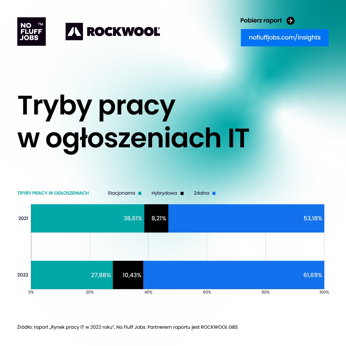 Raport „Rynek pracy IT w 2022 roku” powstał we współpracy No Fluff Jobs z Rockwool GBS, firmą rodzinną z 80-letnią tradycją, która kieruje się wartościami w biznesie i stawia na nieustanny rozwój pracowników(-czek).