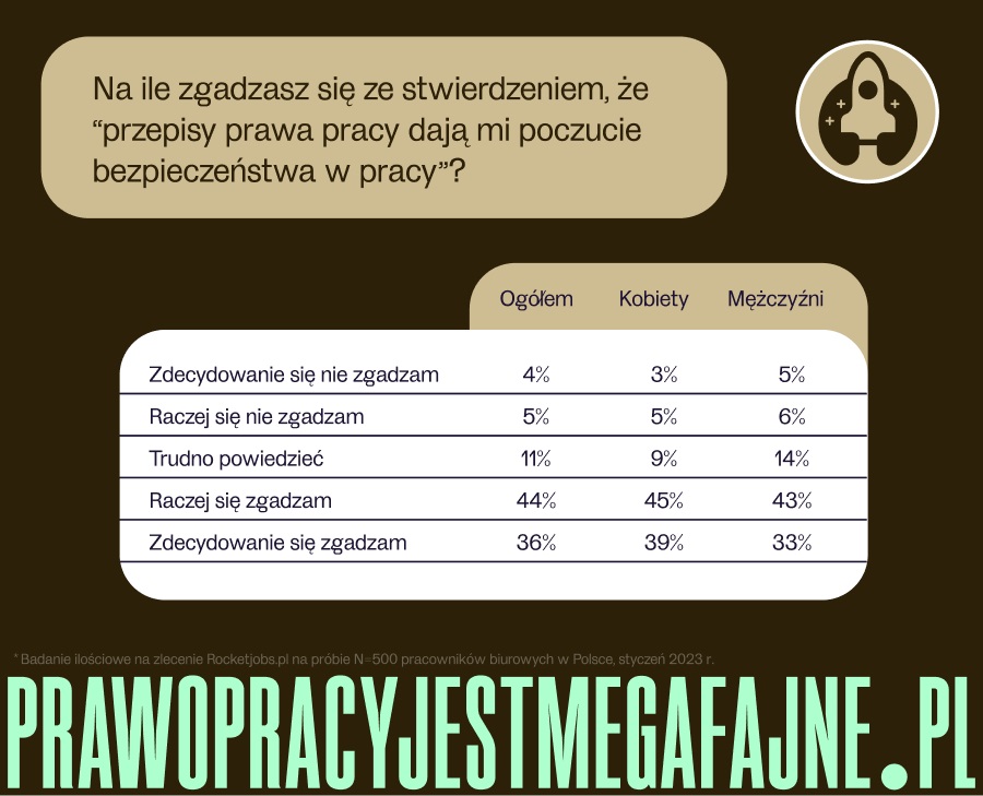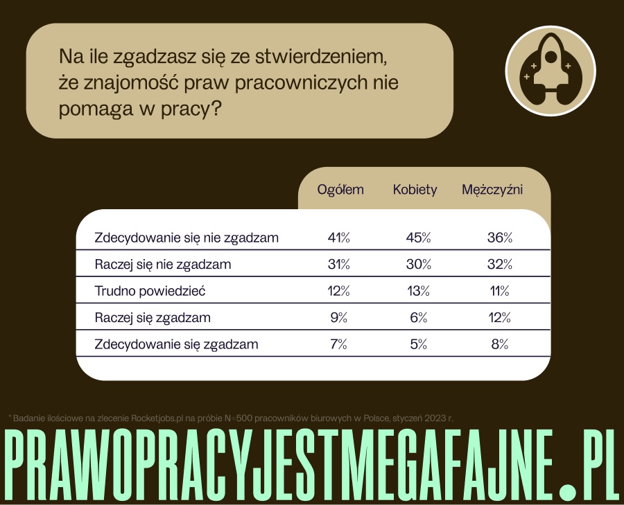Opierając się na wynikach badań portal Rocketjobs.pl zainicjował kampanię edukacyjną pod hasłem www.prawopracyjestmegafajne.pl, której celem jest zwiększenie wiedzy dotyczącej prawa pracy wśród pracowników oraz zachęcenie ich do zapoznania się z przysługującymi im prawami.
