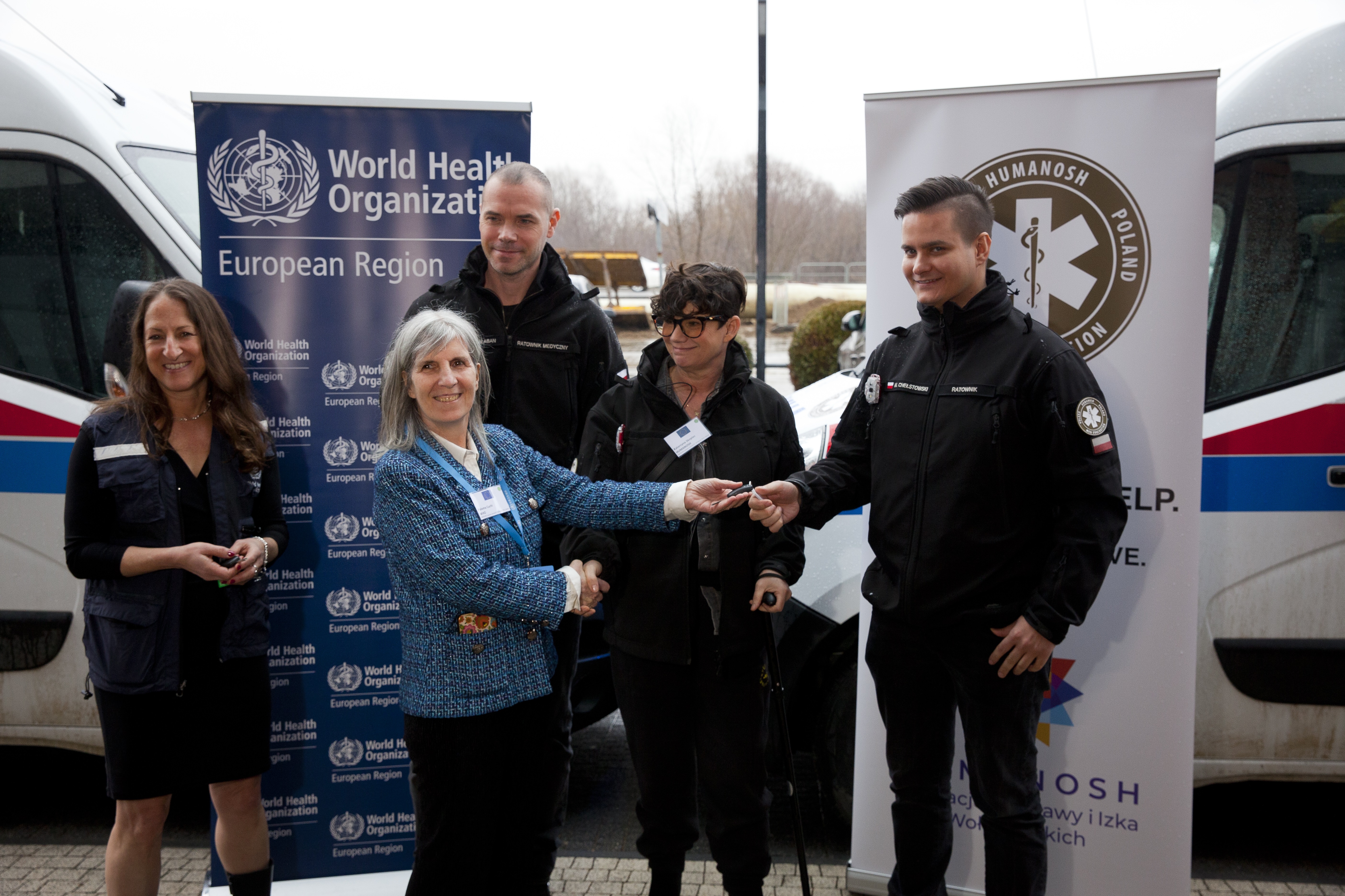 WHO przekazała cztery dodatkowe ambulanse na potrzeby operacji ewakuacji medycznej (MEDEVAC) z Ukrainy do Polski. Fundusze umożliwiły polskiej Fundacji Humanosh zakup używanych pojazdów i przekształcenie ich w specjalistyczne ambulanse ratunkowe. Doposażone jednostki będą miały kluczowe znaczenie w operacjach medevac podczas transgranicznych transportów ciężko rannych pacjentów. Po uroczystym przekazaniu w Rzeszowie, już wkrótce zostaną wysłane w teren, wzmacniając konwoje medevac ratujące życie ukraińskich pacjentów. Zwiększona flota karetek pozwoli na transport większej liczby pacjentów z odległych obszarów Ukrainy.