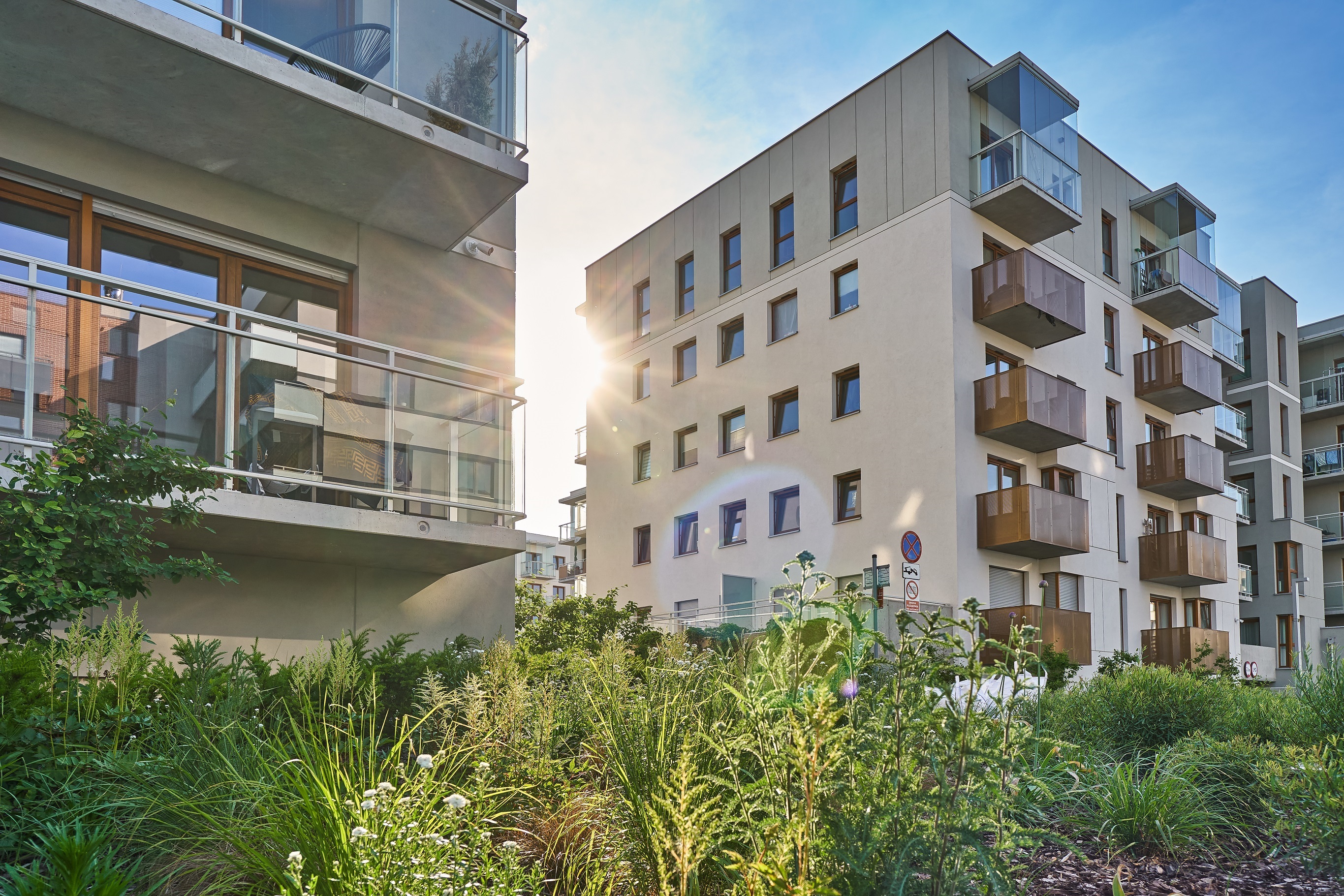 Coraz bardziej stawia się też na ekologię. Czynniki, na które zwraca się uwagę podczas wyboru idealnego miejsca do mieszkania, to także nawadnianie wodą deszczową terenów zielonych, panele fotowoltaiczne, które zasilają części wspólne budynków, energooszczędne oświetlenie LED w częściach wspólnych czy stacje ładowania samochodów elektrycznych.