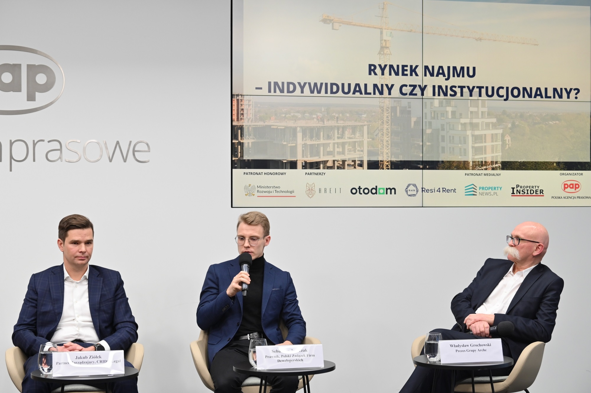 Sebastian Juszczak z Polskiego Związku Firm Deweloperskich podkreślał, że jego branża nie czuje się zagrożona konkurencją ze strony rynku najmu, gdyż oba te sektory się wzajemnie uzupełniają. Jednak wskazał, że - według danych GUS - w 2022 roku liczba rozpoczynanych budów spadła o ok. 30 proc., a większość klientów kupuje obecnie mieszkania za gotówkę i to na potrzeby inwestycyjne.